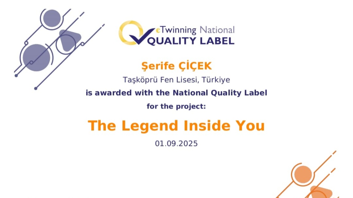 “The Legend Inside You” eTwinning Projemize Ulusal Kalite Etiketi...